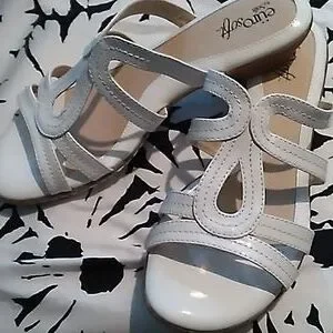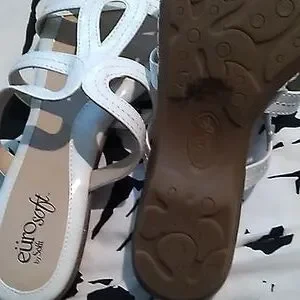 Eurosoft by Sofft size 8M White patent slip on sandal with small heal