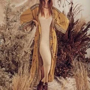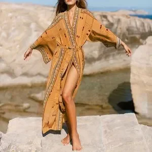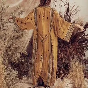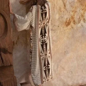 Bohemian Western Aztec Tribal Geo Belted Kimono Duster Cover up Beach