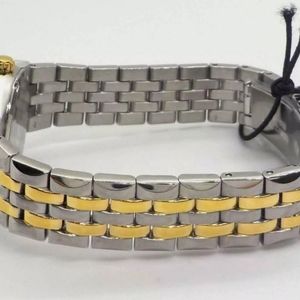 Stainless steel case with a two-tone (silver-tone and yellow gold-tone) stainless steel bracelet. Fixed yellow gold-tone bezel. Blue dial with luminous yellow gold-tone hands and index hour markers. Minute markers around the outer rim. Dial Type: Analog. Luminescent hands and markers. Date display at the 3 o'clock position. Citizen caliber Eco-Drive E011 eco-drive movement. Scratch resistant mineral crystal. Pull / push crown. Solid case back. Round case shape. Case size: 28 mm. Case thickness: 8 mm. Band width: 14 mm. Fold over clasp with a safety release. Water resistant at 100 meters / 330 feet. Functions: date, hour, minute, second, solar-powered. Sport watch style. Watch label: Japan Movt. Citizen Corso Eco-Drive Blue Dial Two-tone Ladies Watch EW2294-53L.