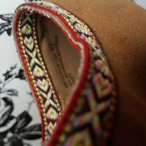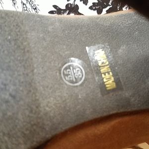 pre owned in good condition Anne Michelle Revenge heeled ankle boot size 5 1/2 has dark color spot on back of heel area see pictures laces has fraying see pictures