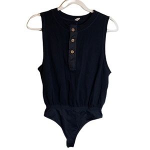 EUC Free People Peek Aye Henley Textured Bodysuit