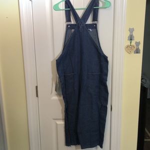 Classic overalls with all the buttons and pockets, but lighter weight denim and capri length legs. All the designs are embroidered. Women’s cut, false flap in front.