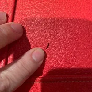 I can't tell if what you are pointing to is a cut or a mark - please specify. Also, where on the bag is it?