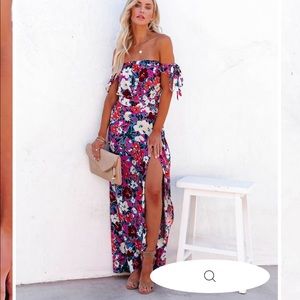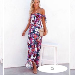 VICI ALL THE FLOWERS OFF THE SHOULDER MAXI DRESS