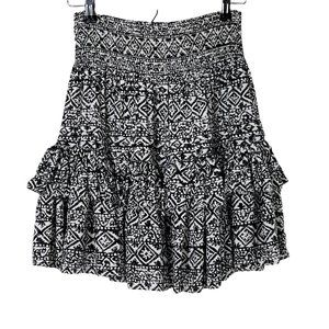 Lauren Ralph Lauren Black White Tiered Smocked Ruffle Full Mini Skirt Size 4P
