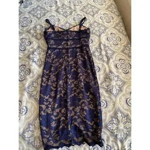 blue lace v neck short dress
