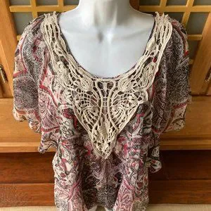 Style & Co. Print Crochet Flutter Sleeved Blouse Large