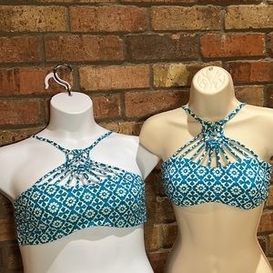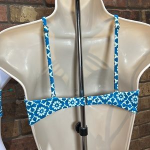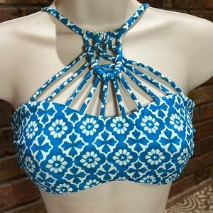 This is a new bikini top from Tori Praver. There is no tag. By design, this does not have any padding but does have two layers of fabric/liner. Has adjustable straps. This would look great with white shorts, jeans, solid colored skirts, shorts or bikini bottoms. This comes from a smoke free home.