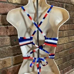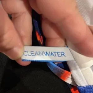This is a new bikini top from Cleanwater. There is no tag. There are removable pads. This would look great with white shorts, jeans, solid colored skirts, shorts or bikini bottoms. This comes from a smoke free home.