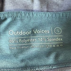 Outdoor Voices colorblock leggings in purples and light blue. Size Small. 86% polyester and 14% spandex.