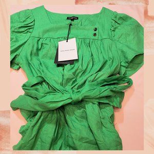 NWT. Flowing midi dress. Featuring a square neckline, short puff sleeves, size zip-up closure, button detail, and pockets.