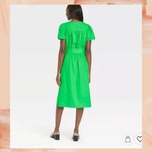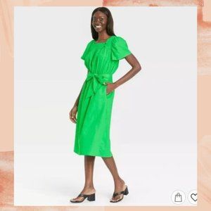 NWT Who What Wear Green Waist Tie Midi Dress