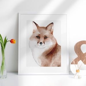 TAGS: Cute Animal, Nursery Decor, Modern Wall Art, Physical Art Prints, Animal Portrait, African Jungle, Tropical Art Prints, Watercolor Wall Art, Nature Forest, Fox Poster, Fox Prints, Home Decor, Girls Bedroom Decor, Modern Artwork,