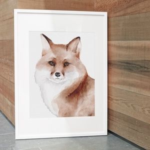 Watercolor Fox Portrait Wall Art Print Poster Unframed