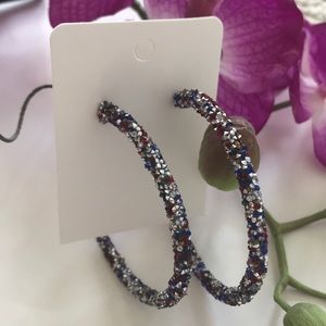Glitter Hoop Earrings in Red, Silver& Blue. Super cute, super fun addition to your accessories wardrobe. Lead and nickel compliant. New Boutique Item. Other colors available!
