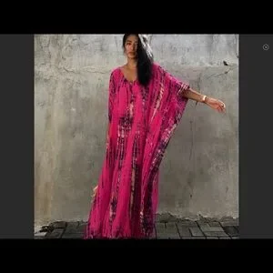 Beautifully ellegant and fun Kaftan, from the deeply muted magenta color to the whimsical cut that’s both light and airy. Perfect to pair wear over a bikini or on it’s own.