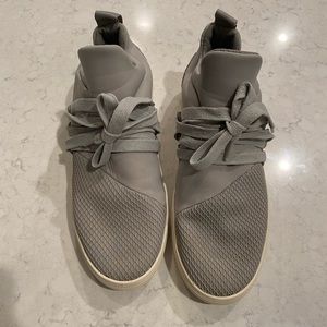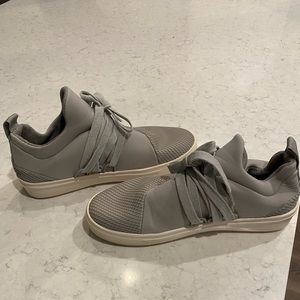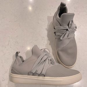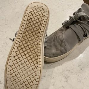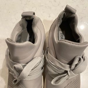 Gray Steve Madden Lancer sneakers. A little worn and run a little big. I normally wear a 7. Sole is a cream color, not white