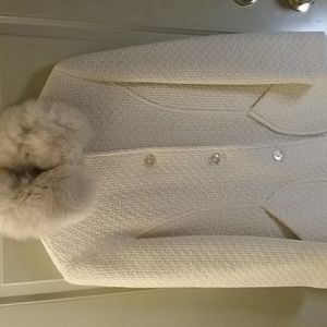 Nicole Miller Cream Winter Fur trim Knit Coat