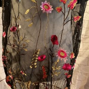 “ EMBROIDERED FLORAL TOP” Sheer Black Netting with Lovely Embroidery.
