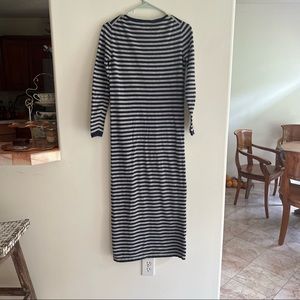 MASSIMO DUTTI sz XS Cotton Midi Sweater Dress Striped Navy Blue and light Grey
