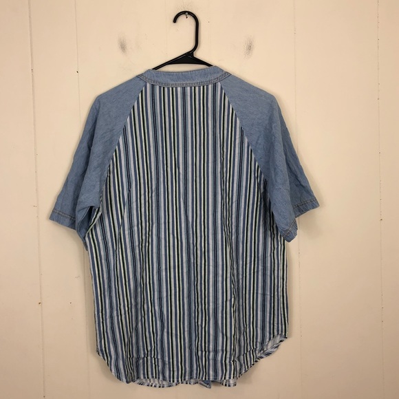 Vintage Striped Short Sleeve Denim Button Down Sz L