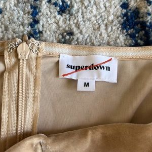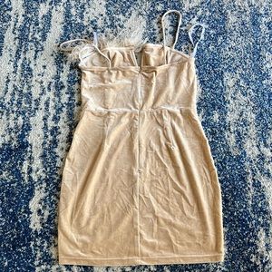 superdown Erika Feather Trim Mini Dress in Champagne M