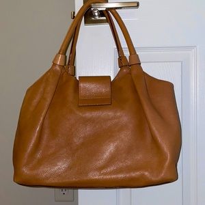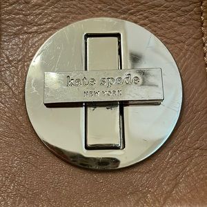 Gently loved Kate Spade satchel in camel tan/light brown. Shows minor signs of wear as would be expected, nothing major or super noticeable. Large enough for all your goodies but not too big for an everyday bag. She’s a beaut! 14”L x 10”H x 6”W