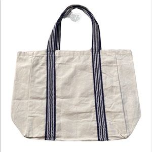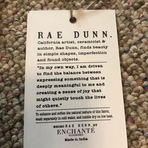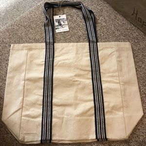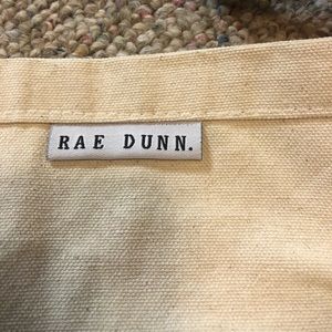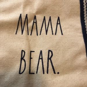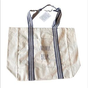 π―% authentic Rae Dunn MAMA BEAR Tote Bag NWT iconic Rae Dunn lettering MAMA BEAR embroidered in navy blue on π―% cotton canvas reusable shopper tote bag. Front slip pocket . Double navy blue striped handles Approximate measurements ( 21 1/2 x 16 ) ) Never been used