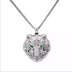 New tiger face green eyes stainless steel necklace