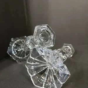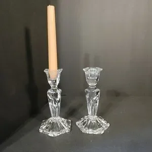 Today I have a Set of 2 Vintage Crystal Candle Holders. They are 7" tall and 3.50"at the base. This set is in perfect condition. NO chips cracks discoloration breaks or repairs. Beautiful addition to your Crystal or Great pieces to start with!
