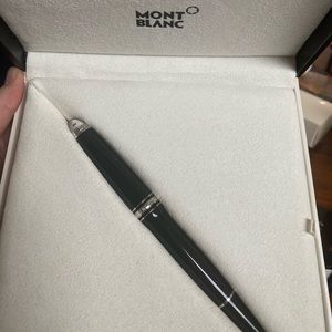 Montblanc Diamond in the top cap (0.06 ct.) is a patented 43-facet stone with unique craftsmanship and incredible sparkle Barrel and cap are made of black precious resin. Platinum-plated clip with individual serial number . Three platinum-plated rings embossed with the Montblanc brand name. Montblanc rollerball refills with stainless steel tip include black, blue, green, and red.