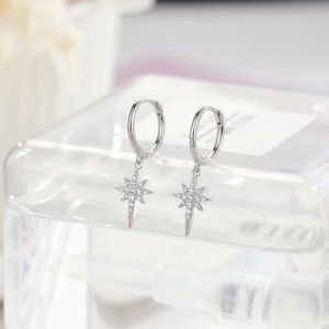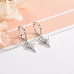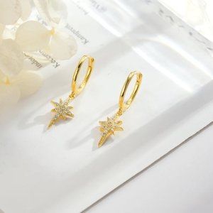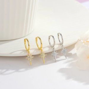 14k Gold Star Diamonds Huggie Hoop Earrings Sterling Silver