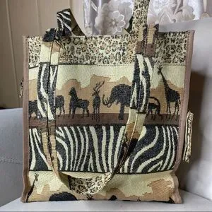 Vintage African Safari Themed Tapestry Tote Bag Purse Benjamin Jordan