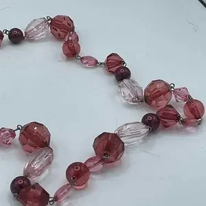 “FACTED BURGUNDY AND PINK BEADED NECKLACE”. Costume Jewelry.