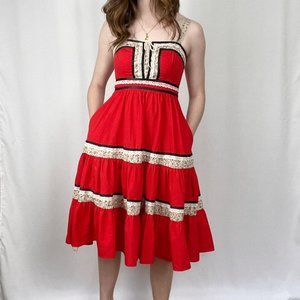 Vintage Cottagecore Tiered Floral Lace Milkmaid Alps German Peasant Midi Dress
