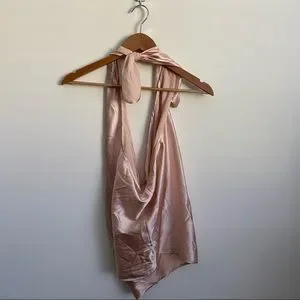 Ramy Brook || Harriet Convertible Silk Charmeuse Top Blush L Halter One Shoulder