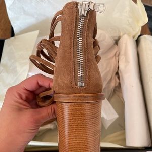 NWT rag & bone Camille Sandals. Camel suede color. Gorgeous spring and summer shoe!! Never even been tried on. Box is scuffed a bit, but shoes are perfect. Dust bag included. Size 7.5 EU size 37.5. Picture on is of another color.
