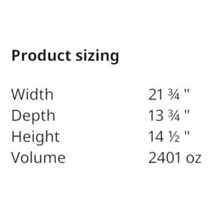 Width: 21 ¾ " Depth: 13 ¾ Height: 14½"