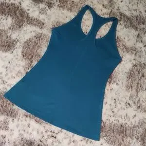 Gorgeous tank! Very sleek feeling fabric! Beautiful teal color! No rips, tears or pilling! Excellent condition!