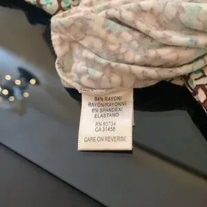 This dress is highly functioning! Very natural cool colors. Wrap style top & tasteful fit n flare length. Worn but still there’s so life to this dress!