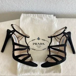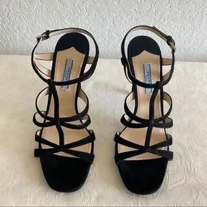 Prada blacks crisscross strap suede sandals