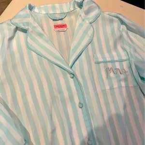 Kate Spade satin striped pajama top size small. Monogrammed with Mrs. NWT