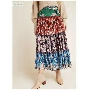 NWT Anthropologie Bhanuni by Jyoti Anarosa Tiered Maxi Skirt Floral Boho 4 $158.
