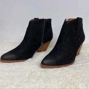 Frye Rory Booties Black Leather Zip Side 3" Wooden Heel NEW Size 9 & 10