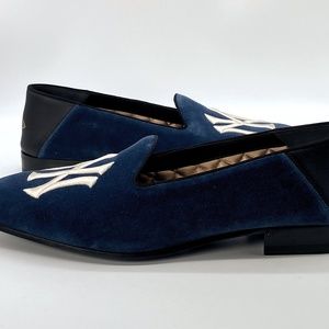 Gucci Velvet New York Yankees Loafers Men's 9US Blue velvet White sew-in NY" "Logo at front Gold satin interior