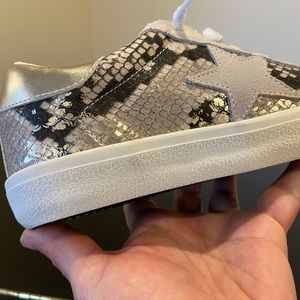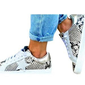-Add some playfulness to your sneaker collection with this faux snake and star low top