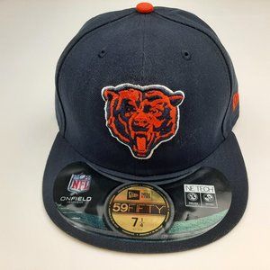 NFL Chicago Bears New Era 59 Fifty 7 1/4 Flat Bill Fitted Cap Hat Blue