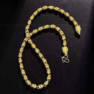 Gold 24K Gold plated Unisex Dragon Head Necklace measures 50cm