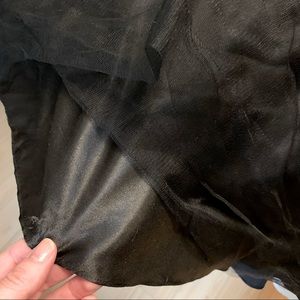 TIFFANY black strapless grad prom dress with satin corset back ties and side zipper. Lots of satin and crinoline layers for that full ball gown look. Multi coloured multi sized sequins throughout. Purchase a size 22 and was altered to approx a size 20 in formal wear (formal wear size 20= normal clothes size 16/18). It can be altered to be and can be cinched with the corset back. Satin bow and beaded embellishments at waist. This dress is stunning and timeless!