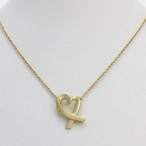 STUNNING HALLMARKED Tiffany & Co. Paloma Picasso 18K YELLOW GOLD Loving Heart Necklace. The pendant measures approximately 9mm by 14mm at its widest/longest points. The chain measures approx. 16.5 inches long. The necklace has a total weight of 2.8